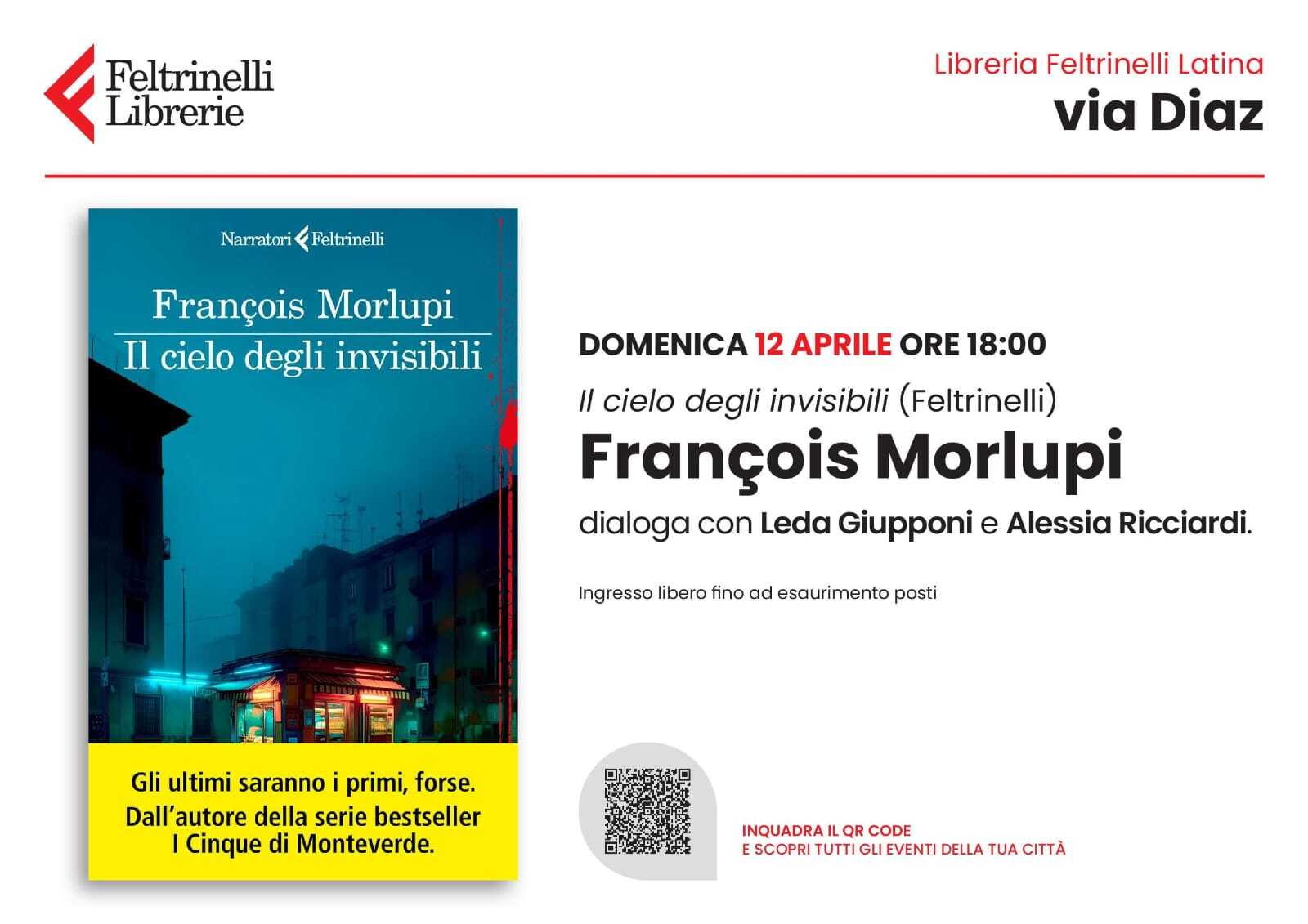 Si terrà oggi alle presso la Libreria Feltrinelli di Latina, la presentazione del nuovo romanzo di François Morlupi, Il cielo degli invisibili (Feltrinelli). L’autore incontrerà il pubblico in un dialogo aperto e coinvolgente, affiancato dalle giornaliste Leda Giupponi e Alessia Ricciardi, che guideranno la conversazione attraverso i temi centrali del libro.