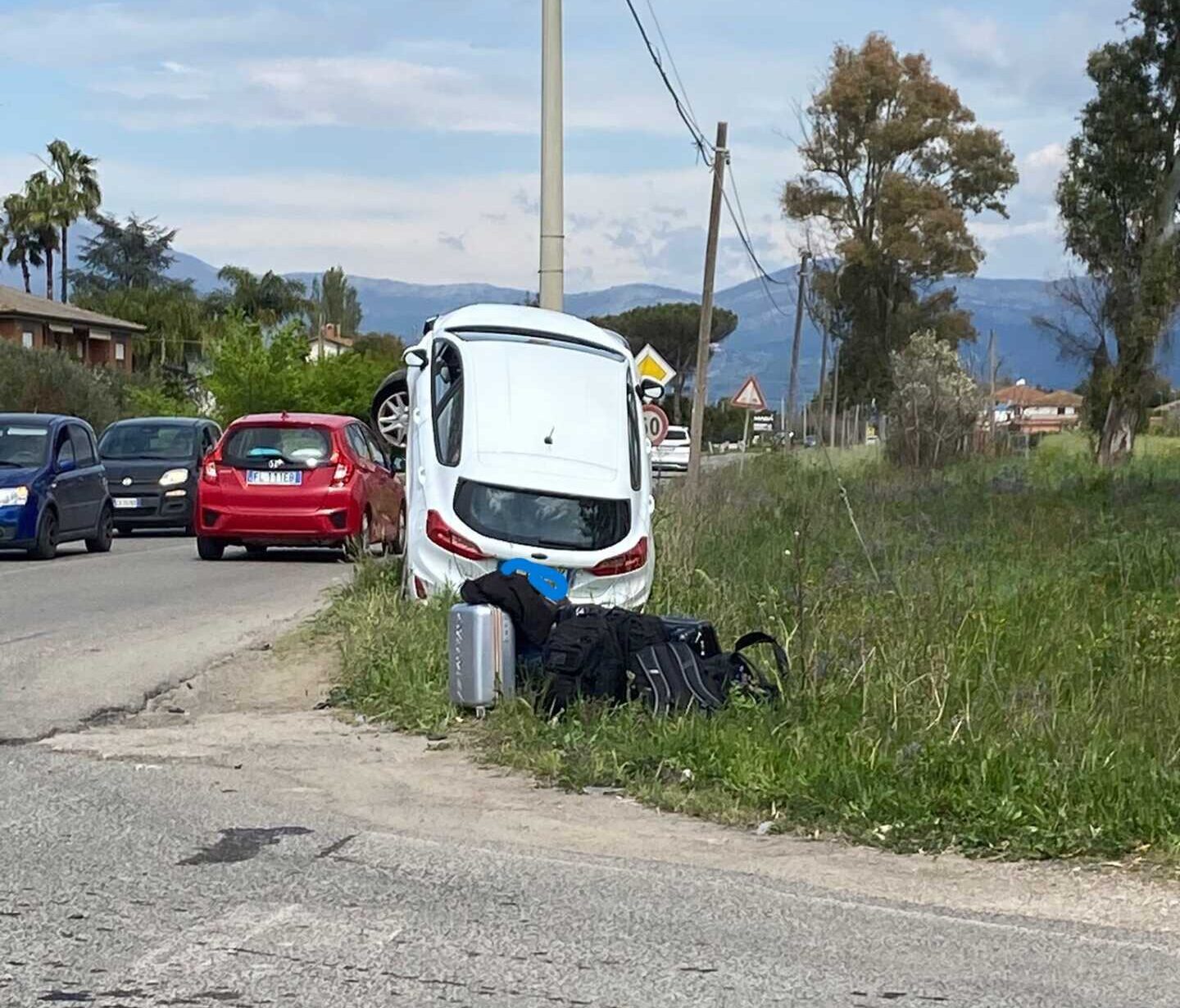 Incidente su strada Chiesuola, auto finisce in verticale su un palo