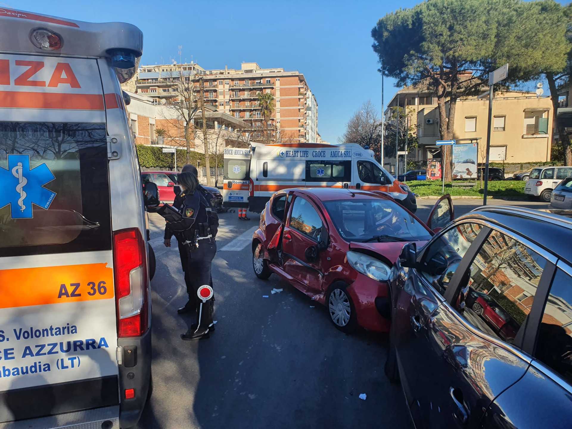 Latina, incidente tra Via Verdi e Via Bonaparte, due feriti