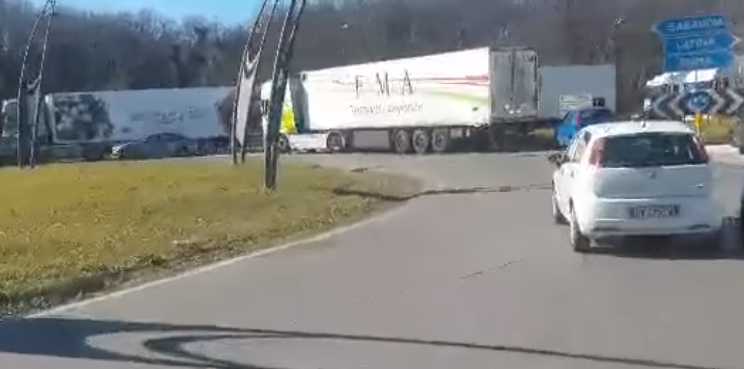 Oltre 40 tir in presidio sulla Pontina alla rotatoria di Sabaudia