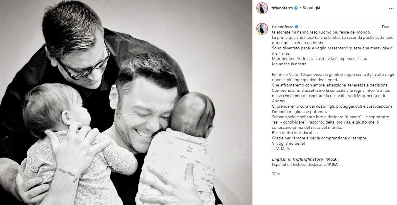 Tiziano Ferro è diventato papà di Margherita e Andres