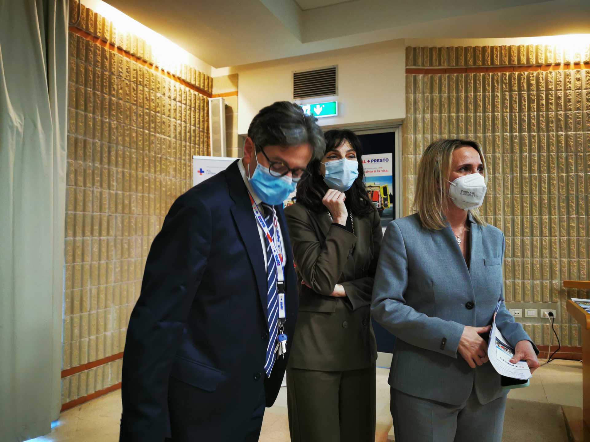 Con una successiva delibera la direttrice generale, che fino ad ora, ai vertici aziendali ha nominato tutte donne, ha scelto il direttore sanitario del Goretti, Sergio Parrocchia come facente funzioni fino alla nomina della persona che succederà a Laide Romagnoli. (nella foto da sinistra Parrocchia, Romagnoli e Cavalli).