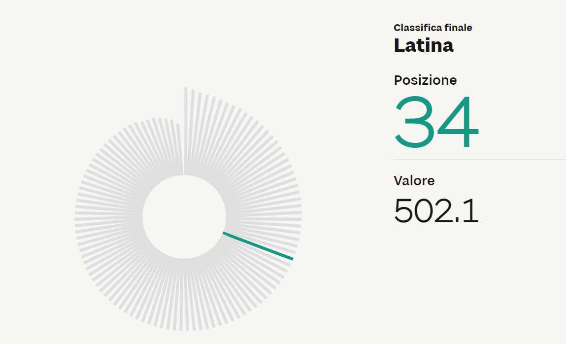 I GIOVANI TRA I 18 E I 35 ANNI – Va molto meglio per i giovani, visto che nella classifica dei servizi e degli indicatori scelti per testare come vivono i ragazzi tra i 18 e i 35 anni, la provincia di Latina risulta 34° Con una performance particolarmente positiva, la 14° posizione soprattutto per le imprese che fanno E-Commerce, per la media dei canoni di locazione in 22° posizione e per imprenditoria giovanile alla 25°. Male gli studi: la percentuale di laureati vede Latina al 94° posto.