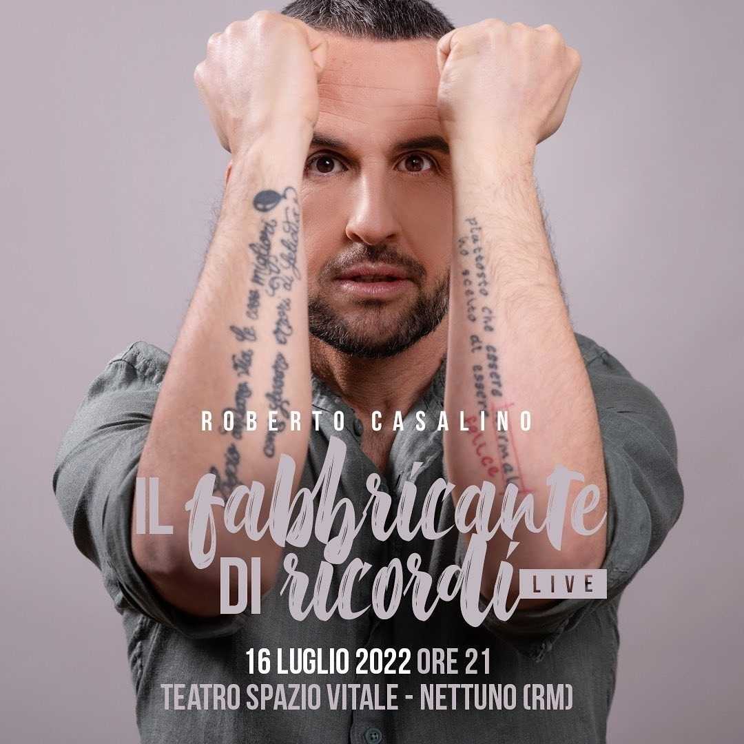 NETTUNO – Il cantautore e paroliere pontino Roberto Casalino torna a suonare dal vivo il 16 luglio al Teatro Spazio Vitale di Nettuno dove si terrà il concerto “IL FABBRICANTE DI RICORDI LIVE”. “Sarà un evento unico, una vera e propria esperienza emotiva attraverso la musica, un live con corpo di ballo e performer coordinati dal regista e coreografo Luca Di Nicolantonio”, promette l’artista. Aprirà il concerto il coro “Le Mani Avanti”; si alterneranno i performer del Circo Nero con spettacoli pirotecnici e tanti ospiti.