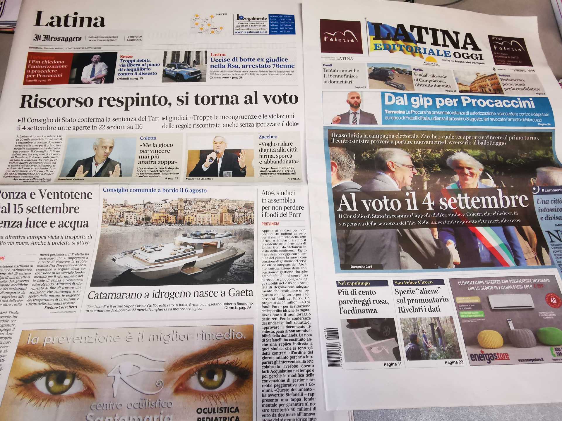 LATINA – Qui trovate Prima Pagina, in un file audio di pochi minuti, i titoli di Latina Editoriale Oggi e del Messaggero Latina