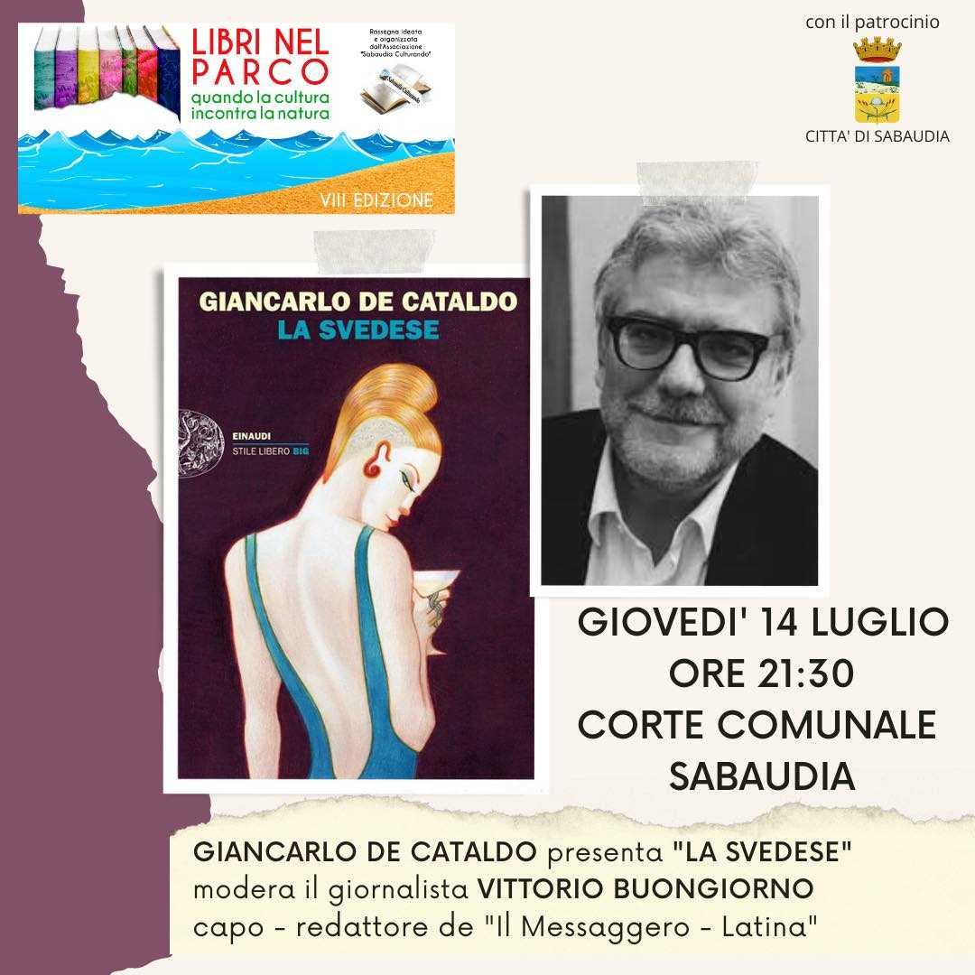 SABAUDIA – Secondo appuntamento a Sabaudia per la rassegna Libri nel Parco dell’associazione Sabaudia Culturando. Dopo il successo del primo appuntamento con la scrittrice e socia onoraria Dacia Maraini, arriva Giancarlo De Cataldo (giovedì 14 luglio alle ore 21:30) che, nella corte comunale di Sabaudia, presenterà il suo ultimo romanzo “La svedese” raccontando ancora una volta il lato oscuro di Roma e l'”irresistibile ascesa criminale di una ragazza nata nel posto sbagliato”. L’autore dialogherà con il giornalista Vittorio Buongiorno.