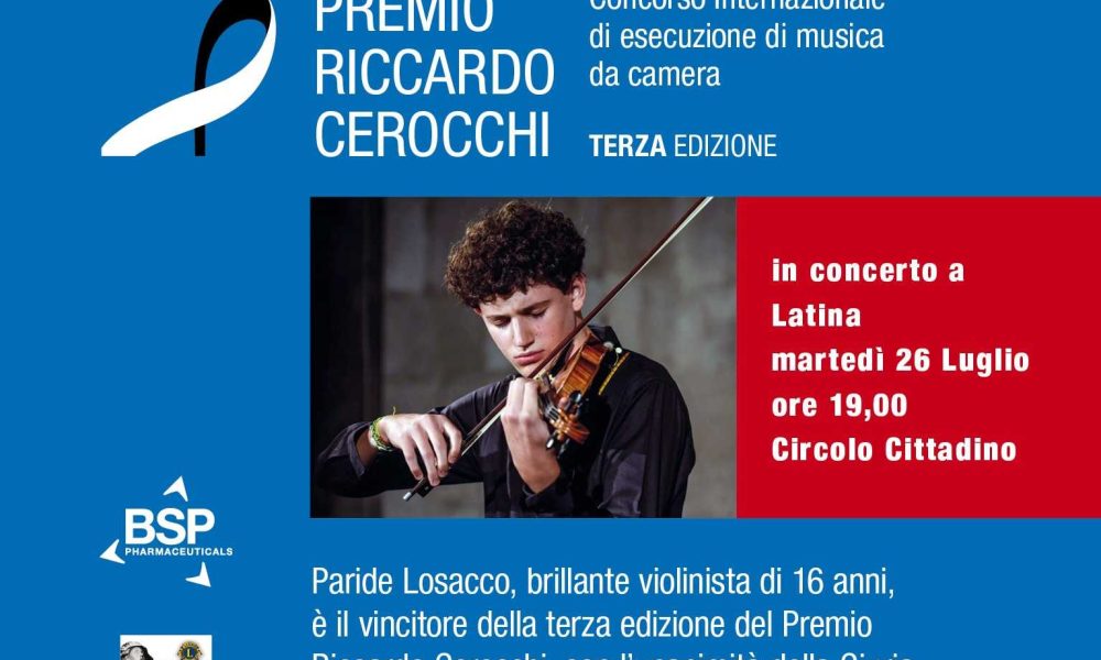 LATINA – Atteso concerto al 58° Festival Pontino di Musica martedì 26 luglio al Circolo Cittadino Sante Palumbo di Latina (ore 19) con il giovanissimo talento...