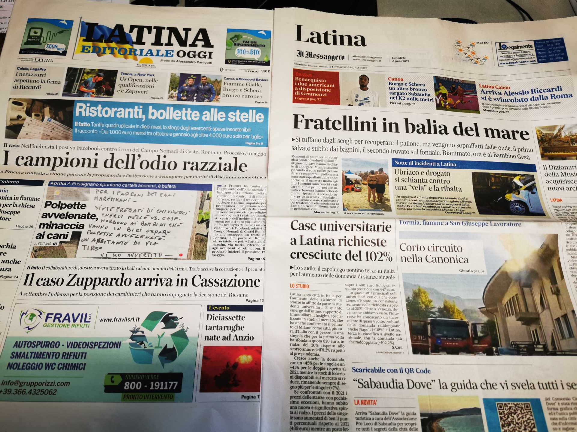I quotidiani locali in un click – 22 agosto 2022