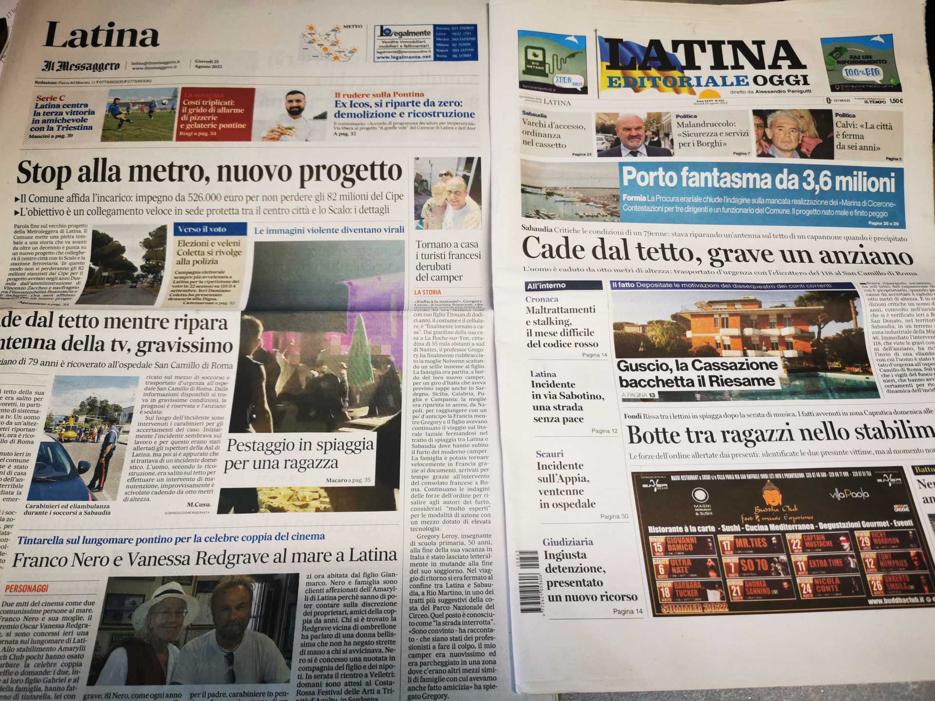 LATINA – Qui trovate Prima Pagina, in un file audio di pochi minuti, i titoli di Latina Editoriale Oggi e del Messaggero Latina