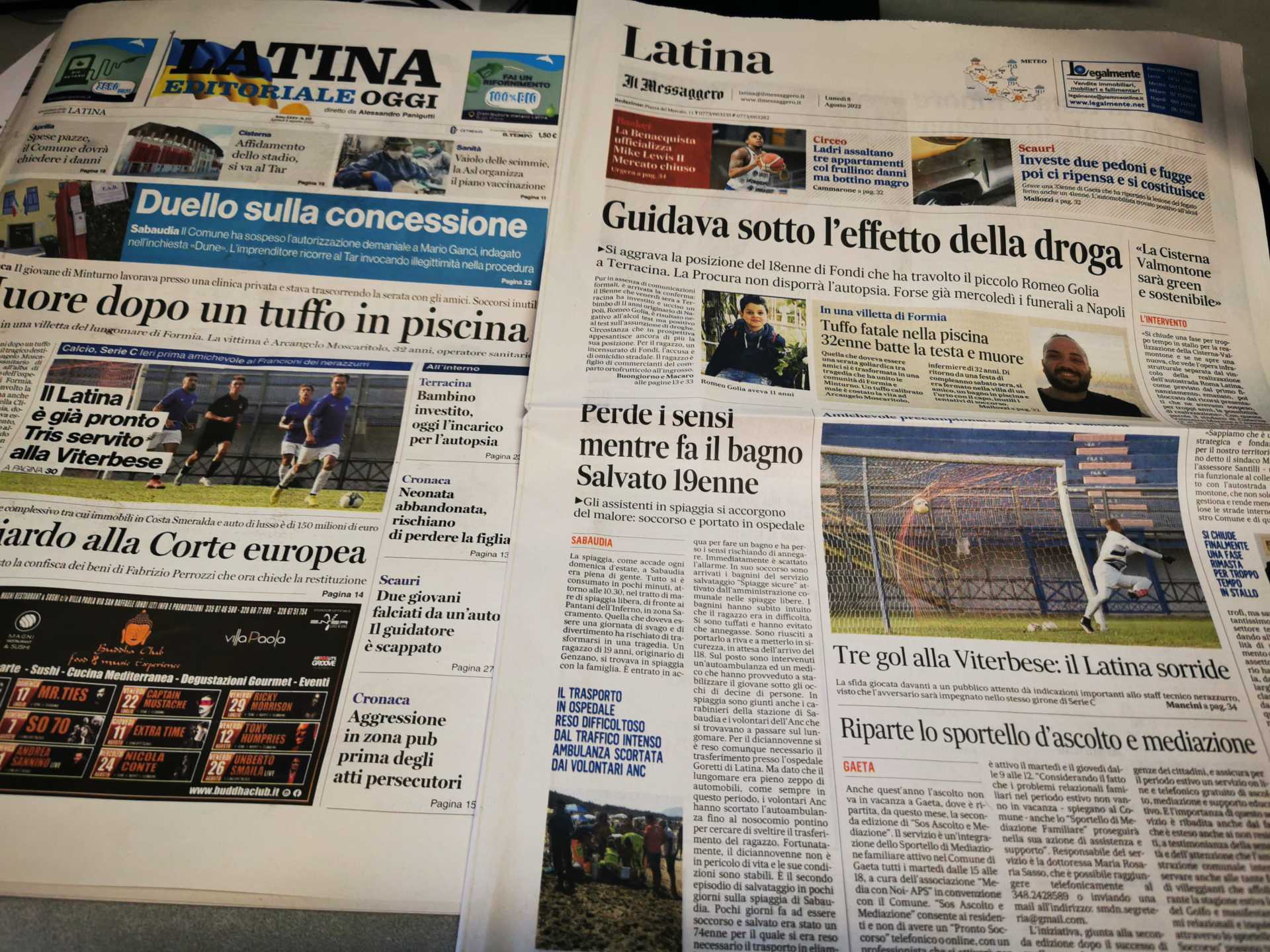 LATINA – Qui trovate Prima Pagina, in un file audio di pochi minuti, i titoli di Latina Editoriale Oggi e del Messaggero Latina