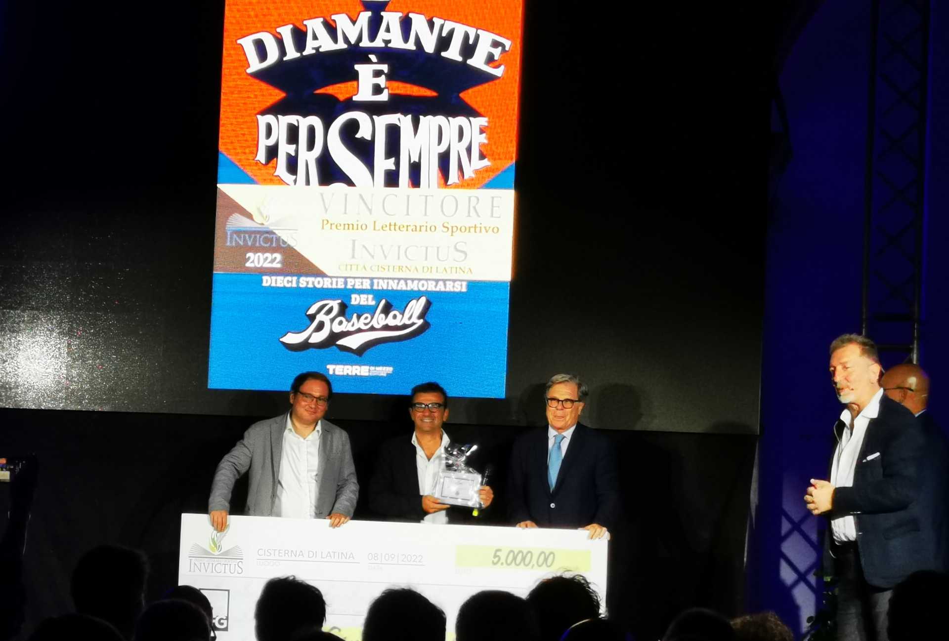 CISTERNA – Il diamante è per sempre, azzeccato titolo per un bel libro sul baseball, ha vinto il Premio Invictus. Nella bella corte di Palazzo Caetani a Cisterna di Latina, la serata di premiazione del Premio Letterario Sportivo giunto alla sua terza edizione ha visto primeggiare l’autore Mario Salvini con un giudizio unanime della giuria.