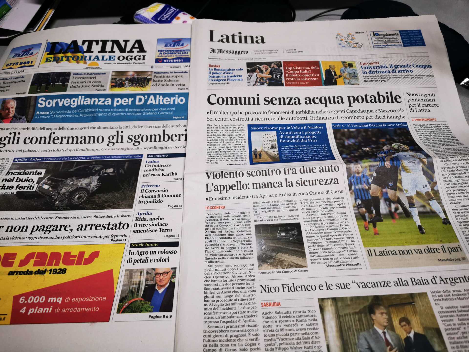 I quotidiani di Latina in un click – 21 novembre 2022