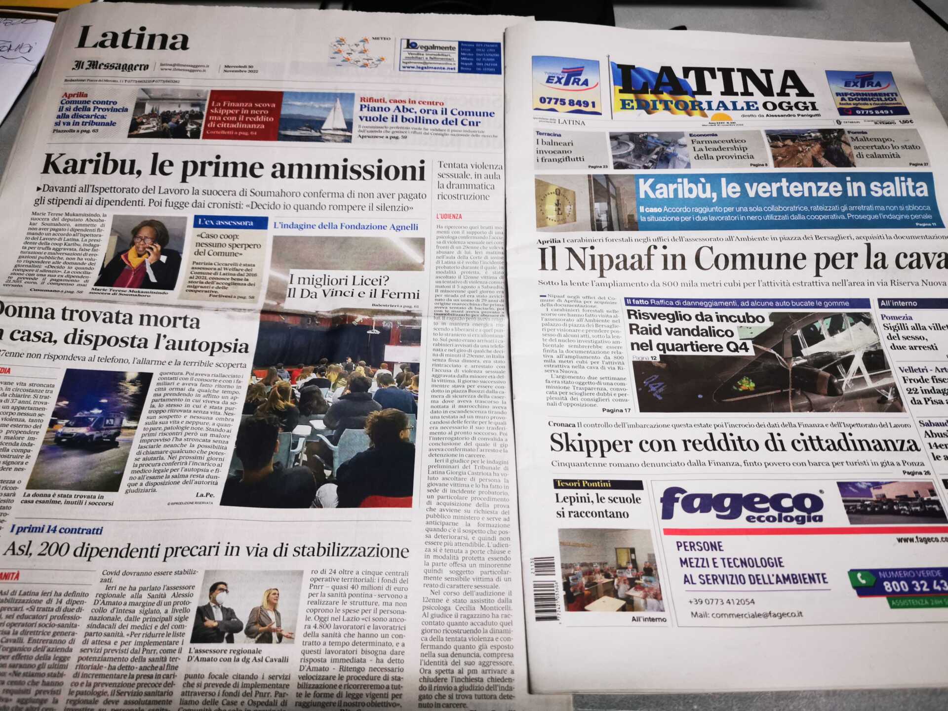 I quotidiani di Latina in un click – 30 novembre 2022