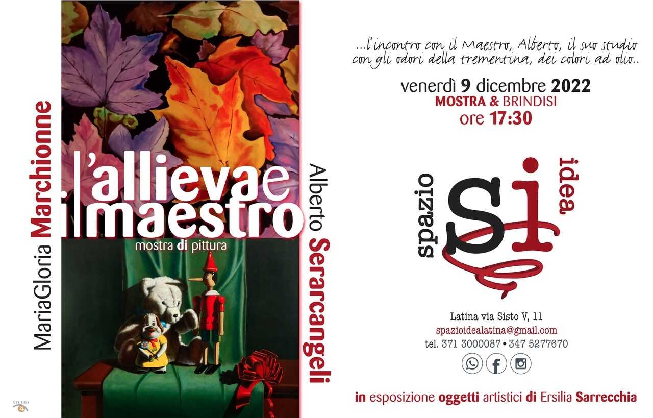 LATINA – Si intitola “L’allieva e il maestro”, la mostra che si svolgerà venerdì 9 dicembre alle 17,30 presso Spazio idea, in via Sisto V n. 11 a Latina. “L’allieva è Maria Gloria Marchionne, il maestro è Alberto Serarcangeli, artista, docente e divulgatore. Non ci sarà solo un’esposizione di quadri, ma la storia tutta da conoscere di una trasmissione del sapere”, spiegano gli organizzatori.