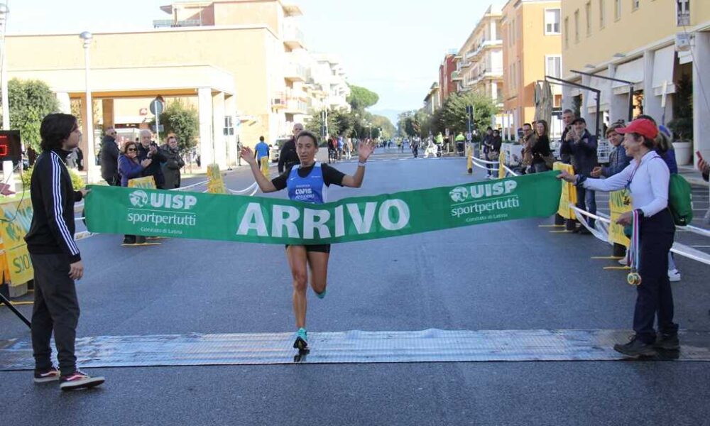 imposto Lupinetti, con un tempo di 1.12’24, distanziando di 19 secondi l’avversario. Il terzo a tagliare il traguardo di piazza del Comune è stato Claudio Marchiori della Nuova Podistica Latina (1.15’36’), distanziando di 6’’ Emanuele Battaglia della Runforever Aprilia. Al quinto posto si è piazzato Andrea Todisco della Aprocis Runners Team (1.19’45’’). Meno equilibrata la gara femminile, con assoluta protagonista Roberta Andreoli della Podistica Avis Priverno, prima con un tempo di 1.31’04’’. Sul podio si sono piazzate Francesca Macinenti del Centro Fitness Montello (1.34’30’’) e Valentina Cipolla della Cat Sport Roma (1.38’33’’), seguite da Paola Ierussi della Free Runners ((1.41’08’’) e Lucia Perilli della Podistica Solidarietà (1.41’45’’). Tra le società si sono piazzate al primo posto a pari merito l’Atletica Sabaudia e il Centro Fitness Montello, con 21 arrivati, seguite dalla Nuova Podistica Latina (17), dalla Podistica Pontinia (10) e dalla Podistica Avis Priverno