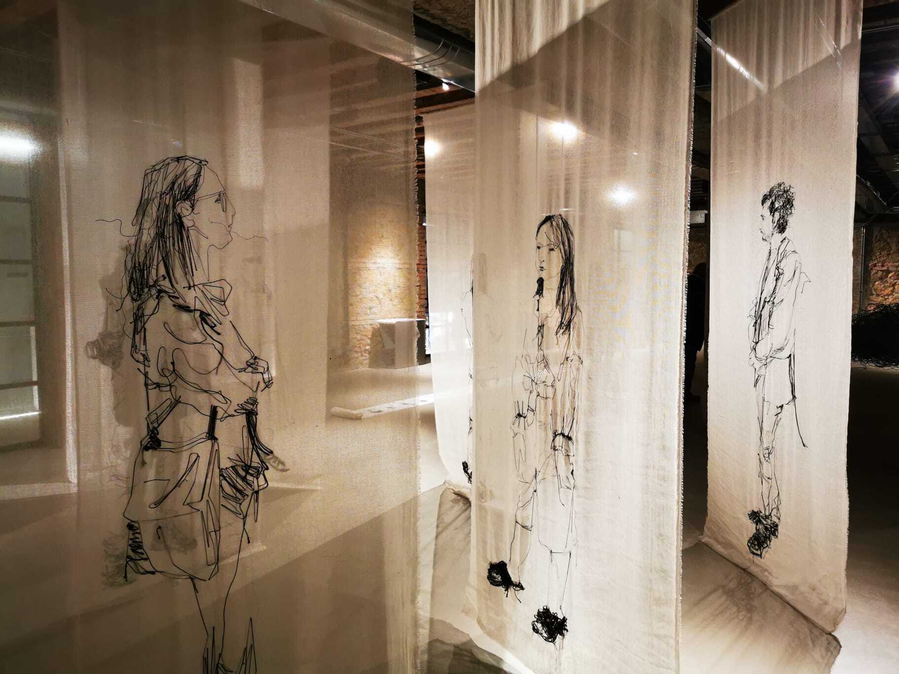Dopo l’ampia partecipazione di pubblico all’opening e durante il mese di apertura della mostra, l’evento di chiusura offre un’ultima occasione per visitare lo spazio trasformato dalle installazioni e dalle originalissime opere di Elena Nonnis che usa filo nero e tessuti chiari di lino antico appartenuti a corredi, per realizzare installazioni, libri d’artista, tele di piccolo e medio formato.