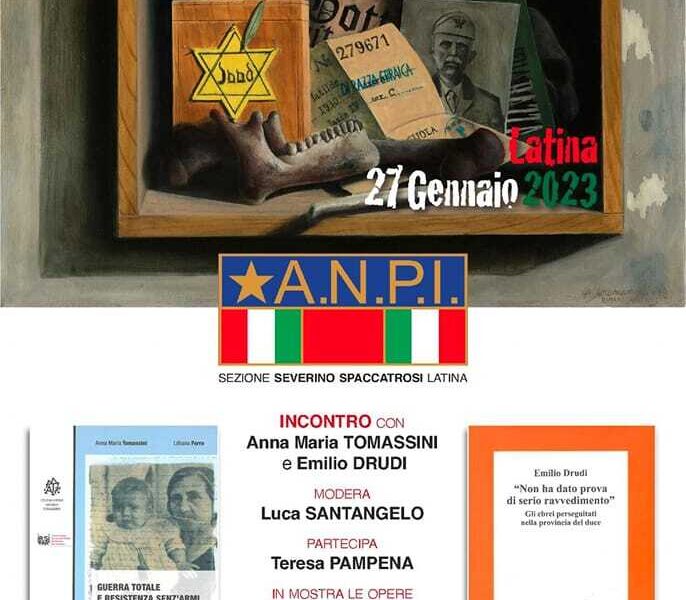 E’ nel segno di queste parole che nasce l’incontro di Venerdì 27 Gennaio, in occasione della giornata della memoria, organizzato dalla sezione di Latina “Severino Spaccatrosi” dell’ANPI, dalle ore 17:30 presso la sala conferenze della CGIL di Latina in Via Cerveteri 2A. Al centro dell’incontro ci sarà il dialogo tra due libri di Anna Maria Tomassini e Emilio Drudi che non solo offrono un contributo per ragionare sul valore oggi della memoria della Shoah, ma anche per ricostruire gli effetti della seconda guerra mondiale nel nostro territorio e in particolare sulla persecuzione degli ebrei e dei dissidenti politici a Littoria, un tema ancora molto poco conosciuto e raccontato.