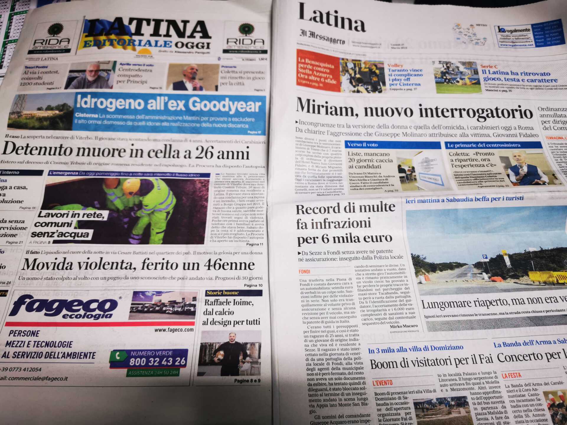LATINA – Qui trovate Prima Pagina, in un file audio di pochi minuti, i titoli di Latina Editoriale Oggi e del Messaggero Latina