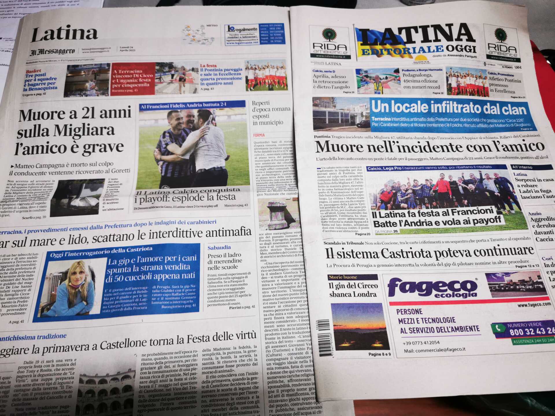 I quotidiani di Latina in un click – 24 aprile 2023