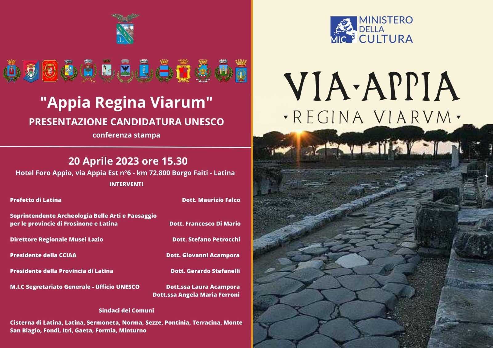 LATINA – Un altro step per il progetto Appia Regina Viarum. La Provincia di Latina di concerto con il Segretariato Generale del Ministero della Cultura sta sviluppando e promuovendo infatti una serie di attività a supporto della candidatura UNESCO . E domani giovedì 20 aprile alle ore 15.30 presso il Foro Appio Mansio Hotel a Latina si terrà la presentazione del Protocollo tra Provincia e Comuni interessati dal tracciato.