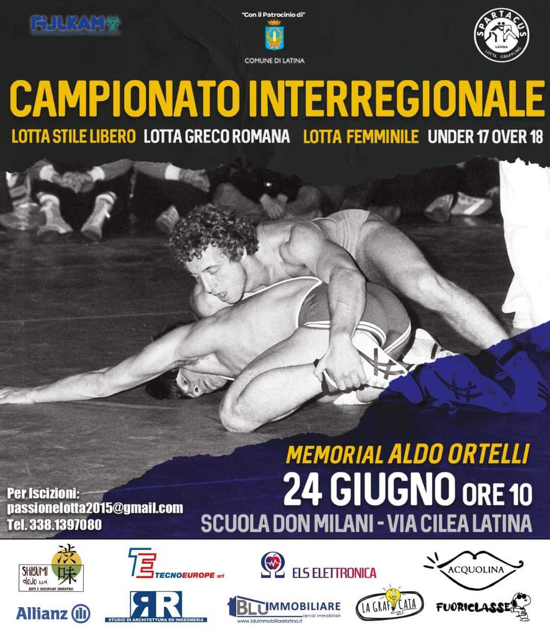 LATINA – Si terrà domani, sabato 24 giugno, alle ore 10:00 presso la palestra comunale dell’Istituto Comprensivo Don Milani, in via Francesco Cilea 3, a Latina, il Campionato Interregionale di lotta stile libero, lotta greco romana e lotta femminile under 17/over 18 “Memorial Aldo Ortelli”.