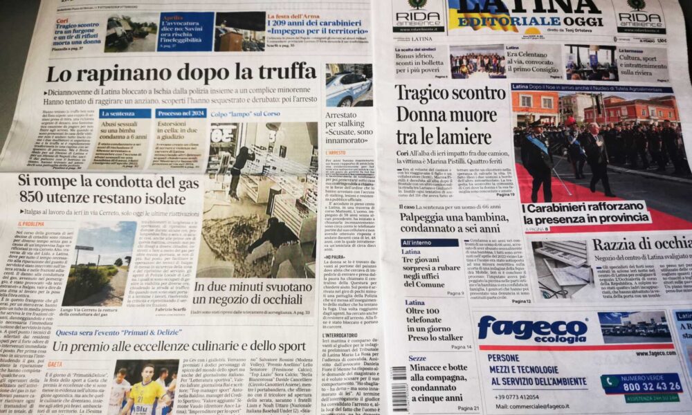 LATINA – Qui trovate Prima Pagina, ora solo in versione web, per dare uno sguardo ai titoli di Latina Editoriale Oggi e Il Messaggero Latina. ASCOLTA