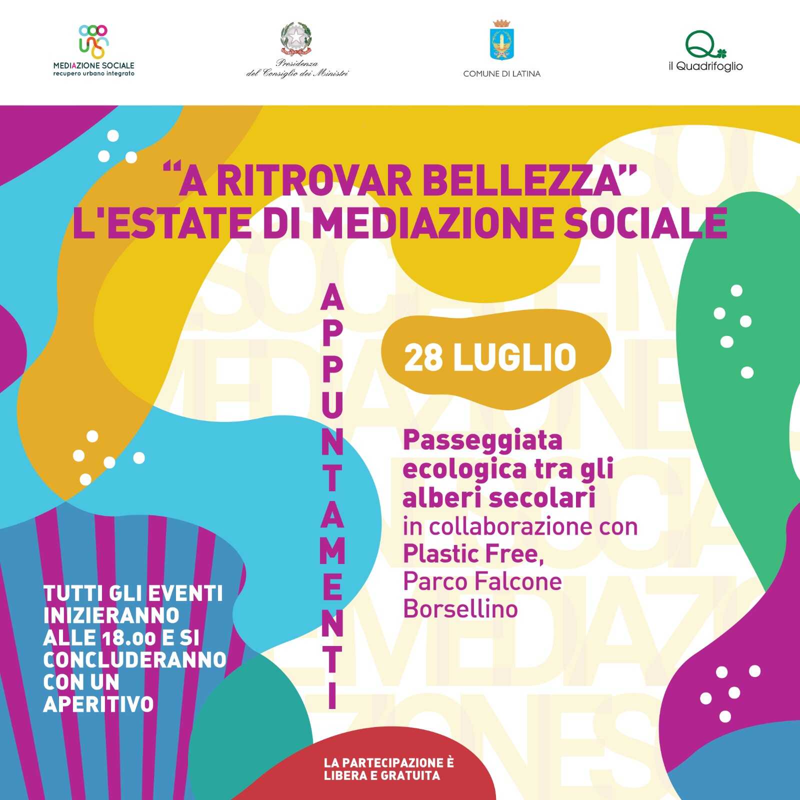 LATINA – Un pomeriggio dedicato alla storia degli alberi e delle piante del centro storico di Latina: è questa la nuova proposta della rassegna estiva “A ritrovar bellezza” organizzata da “Mediazione Sociale Latina – Recupero Urbano Integrato”, progetto promosso dal Comune di Latina – Assessorato ai Lavori Pubblici, finanziato dalla Presidenza del Consiglio dei Ministri nell’ambito del bando delle periferie e gestito dalla cooperativa sociale Il Quadrifoglio.