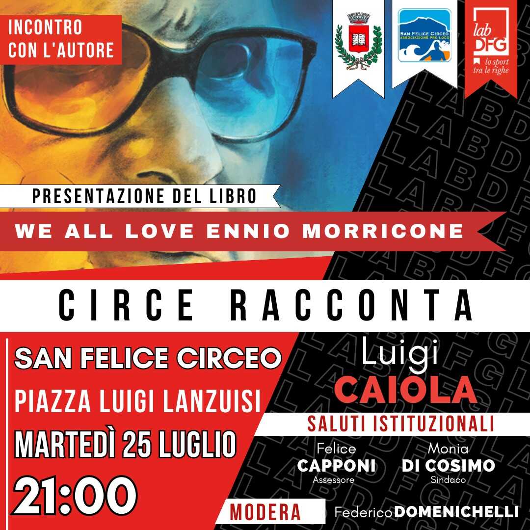 In programma martedì c’è la presentazione di We all love Ennio Morricone, il libro edito dalla Lab DFG, in cui Luigi Caiola, con il giornalista e scrittore Federico Vergari, racconta i 18 anni da manager del Maestro. Il titolo del libro è anche il titolo del cd tributo We all love Ennio Morricone, in cui alcuni dei suoi più noti brani sono interpretati da artisti di fama mondiale come Quincy Jones, Céline Dion, Bruce Springsteen, Roger Waters, Metallica, Herbie Hancock, Andrea Bocelli, Renée Fleming, Yo-Yo Ma e altri.
