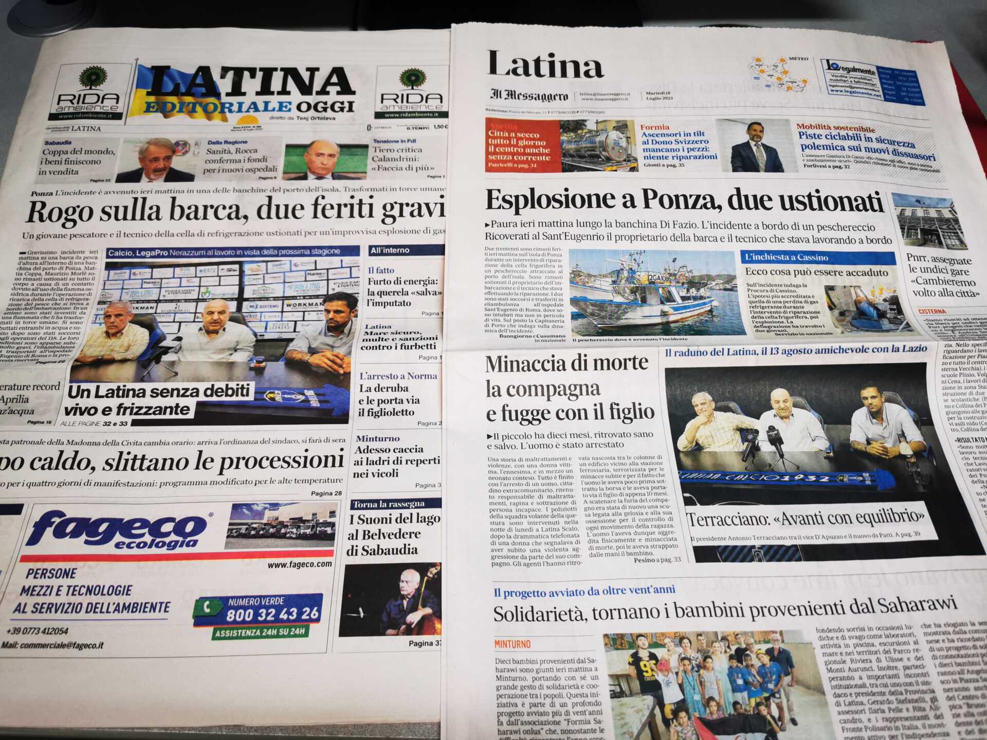 I quotidiani di Latina in un click – 18 luglio 2023