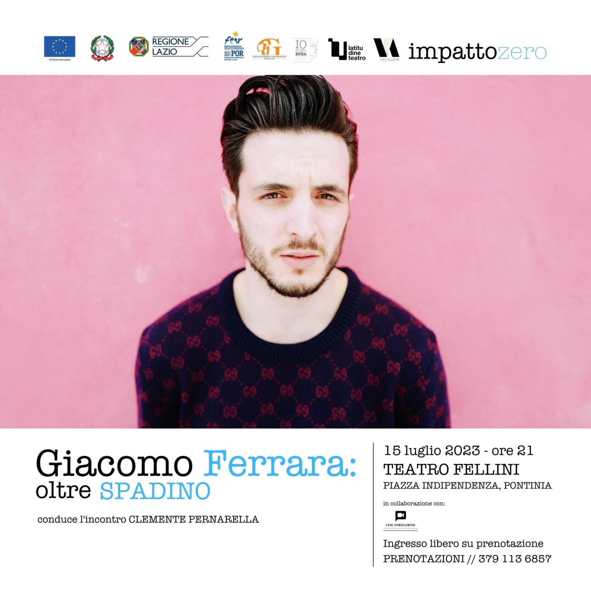15 luglio – ore 21.15 – GIACOMO FERRARA: OLTRE “SPADINO” Dopo il successo travolgente nella serie Tv “Suburra” e la magistrale interpretazione nel film “Grazie ragazzi”, premiato con diversi Nastri d’argento, l’attore Giacomo Ferrara incontra i ragazzi partecipanti al Forum durante un colloquio con Clemente Pernarella, Direttore artistico del Teatro Fellini. Ingresso libero con prenotazione aperto a tutto il pubblico.