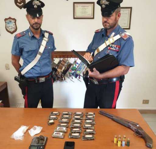 SS COSMA E DAMIANO- Più di due chili di hashish, un etto e mezzo di cocaina e un’arma illegale è quanto hanno trovato di carabinieri nella disponibilità di un 59enne di SS.Cosma e Damiano che è stato arrestato. Droga arma e munizioni erano in casa dove i militari delle stazioni di SS Cosma e Damiano e Scauri sono arrivati per una perquisizione domiciliare. Oltre a un fucile illegalmente detenuto e alterato con 6 cartucce cal.12, i carabinieri hanno trovato ben 21 panetti di hashish per un peso complessivo di due chili e 100 grammi, 158 grammi di cocaina e un bilancino di precisione che sono stati sequestrati. L’arrestato, che era già sottoposto all’obbligo di dimora, è accusato dei reati di detenzione ai fini di spaccio di sostanza stupefacente e porto abusivo di arma e si trova ora ai domiciliari su disposizione dell’autorità giudiziaria.