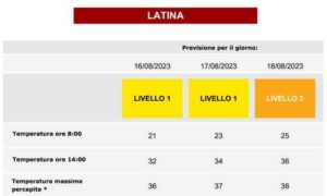 LATINA – Si intensifica il caldo, addio bollino verde che ci ha accompagnato per più di una settimana, oggi e domani resta su Latina il bollino...
