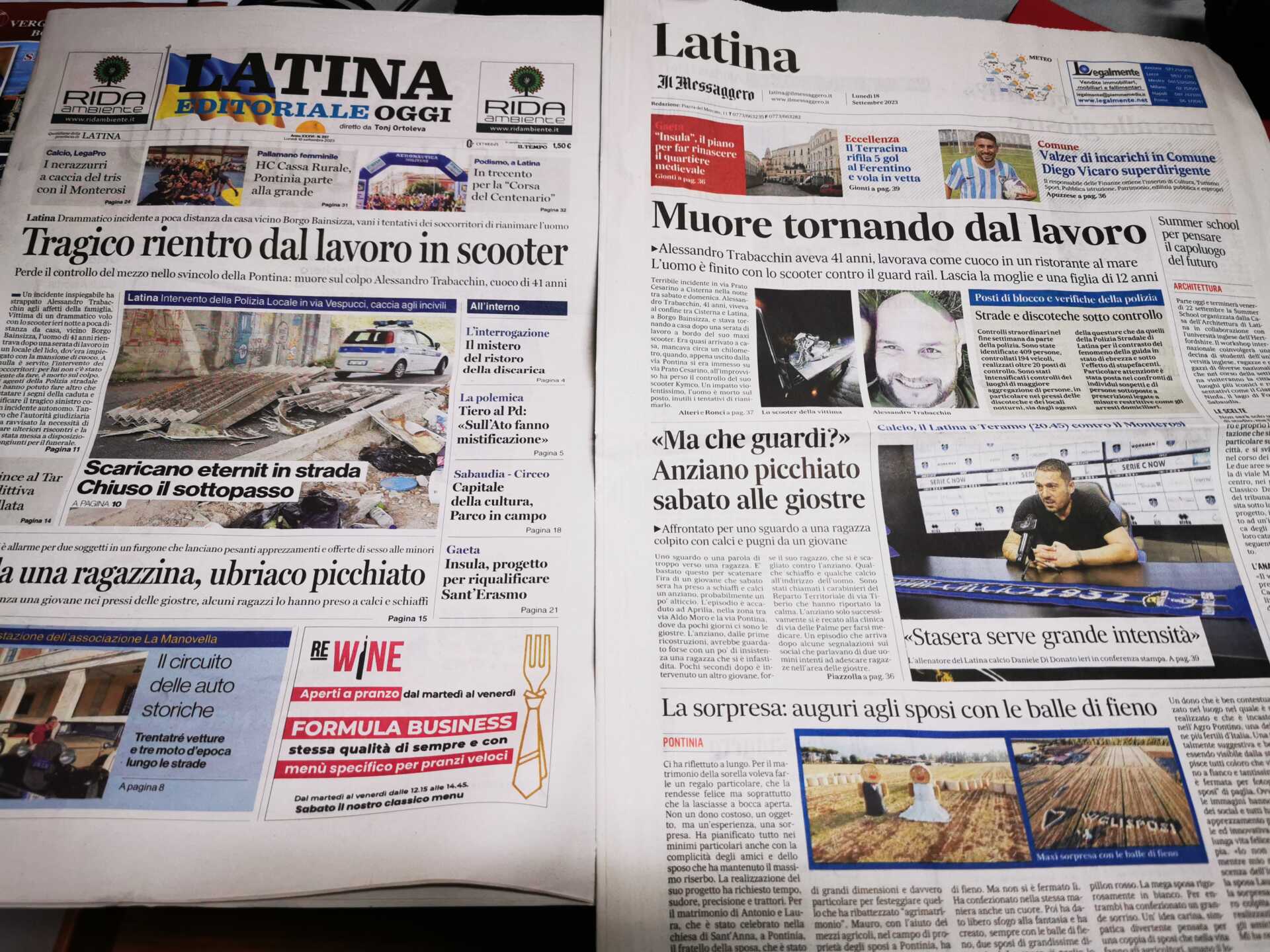 I quotidiani di Latina in un click – 18 settembre 2023