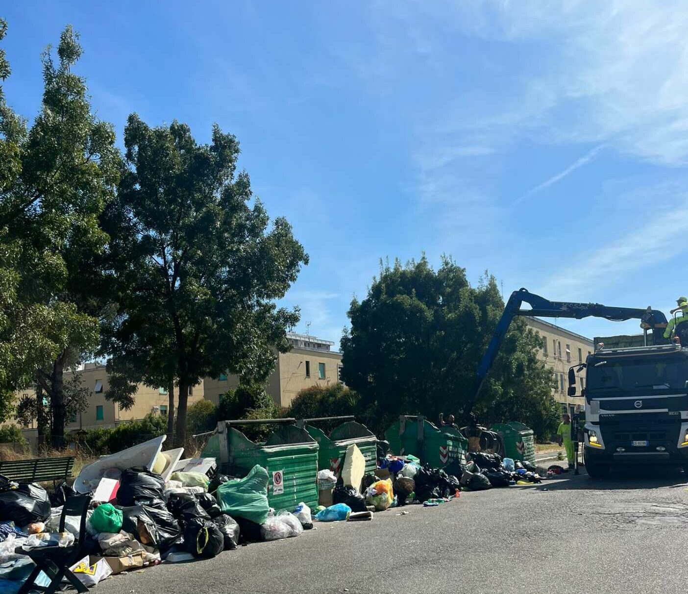 Latina invasa dai rifiuti, la raccolta va avanti con il braccio meccanico