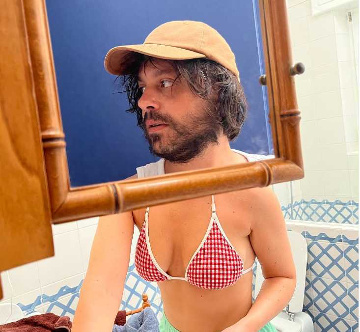 LATINA – E’ uscito oggi il nuovo disco di Edoardo D’Erme in arte Calcutta accompagnato da un post sui social con un fotomontaggio che lo ritrae con la sua barba folta ma indosso un costume da bagno femminile. E’ il suo umorismo. Valanga di commenti.