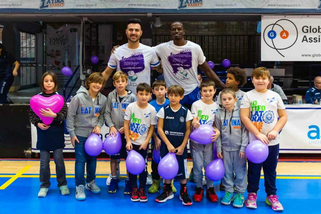 Nella foto l’iniziativa della decima giornata del Campionato di Serie A2 Old Wild West #siamotuttinatiprematuri, pensata in occasione della Giornata Mondiale della Prematurità, organizzata dalla Fondazione Burlo Garofalo, ha visto i capitani delle due squadre in campo, Fall per Latina e Sacchetti per Treviglio, indossare la maglia celebrativa durante il riscaldamento e la presentazione delle squadre.