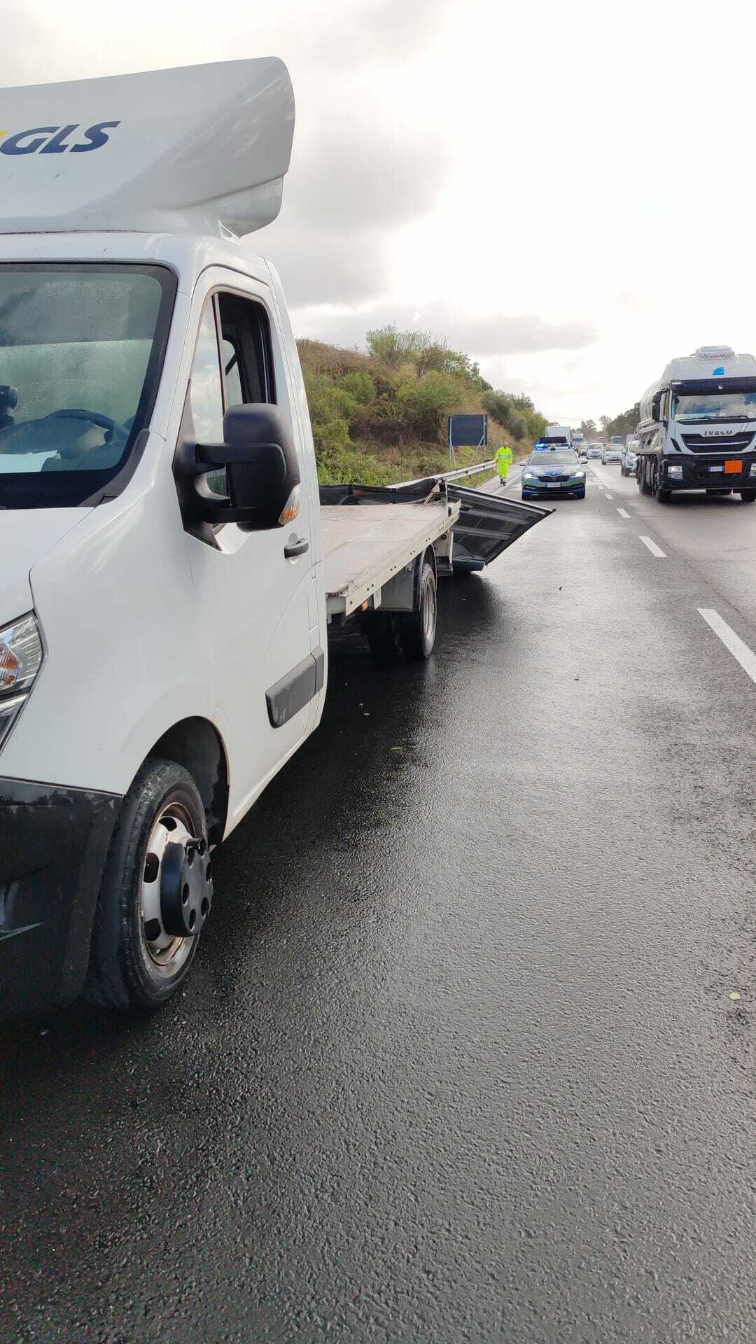 Raffiche di vento forti, furgone perde le paratie laterali che volano sulla corsia opposta della Pontina