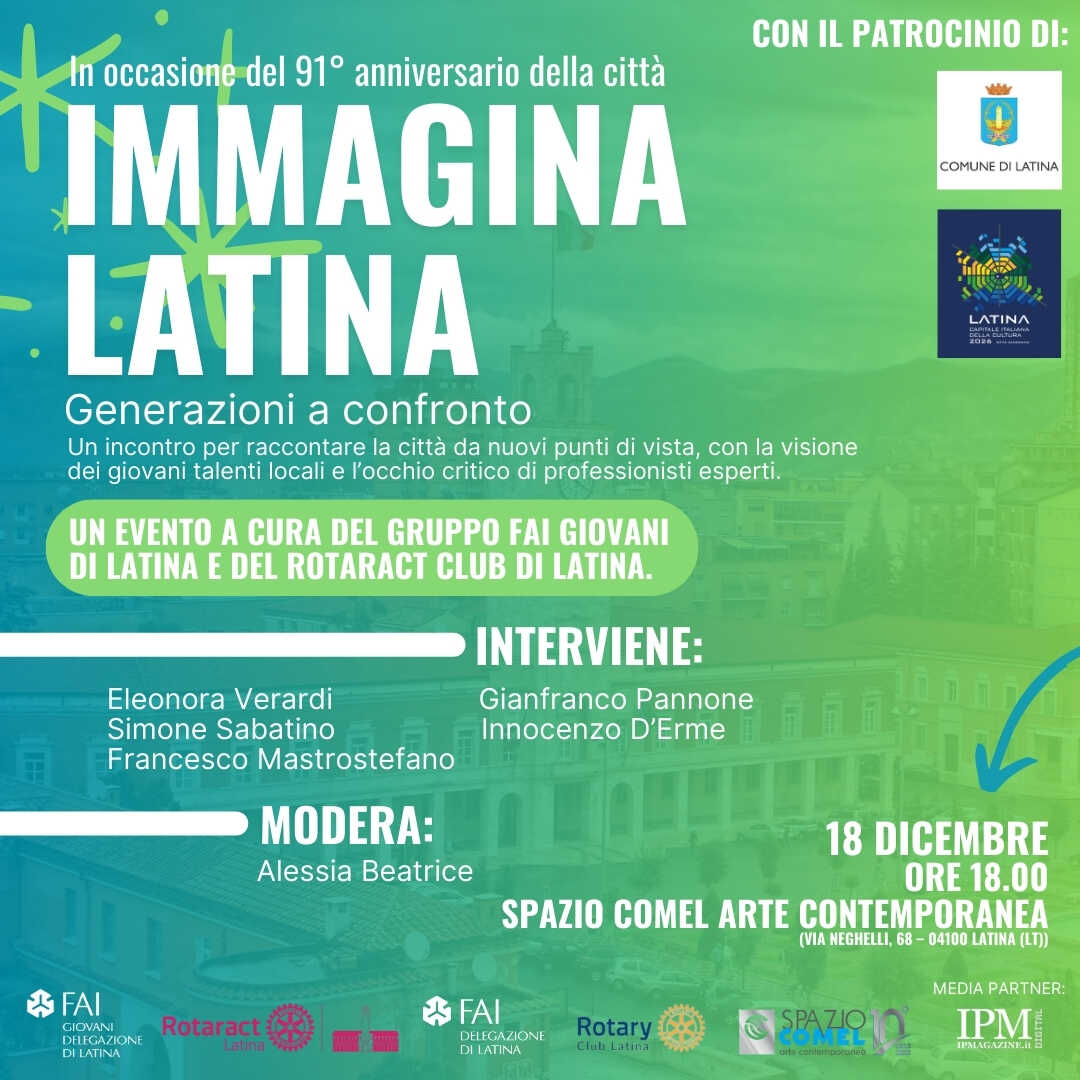 LATINA – Lunedì 18 dicembre alle 18:00, presso lo Spazio COMEL Arte Contemporanea di Latina (Via Neghelli, 68), avrà luogo l’incontro “Immagina Latina” che promette di raccontare, con un