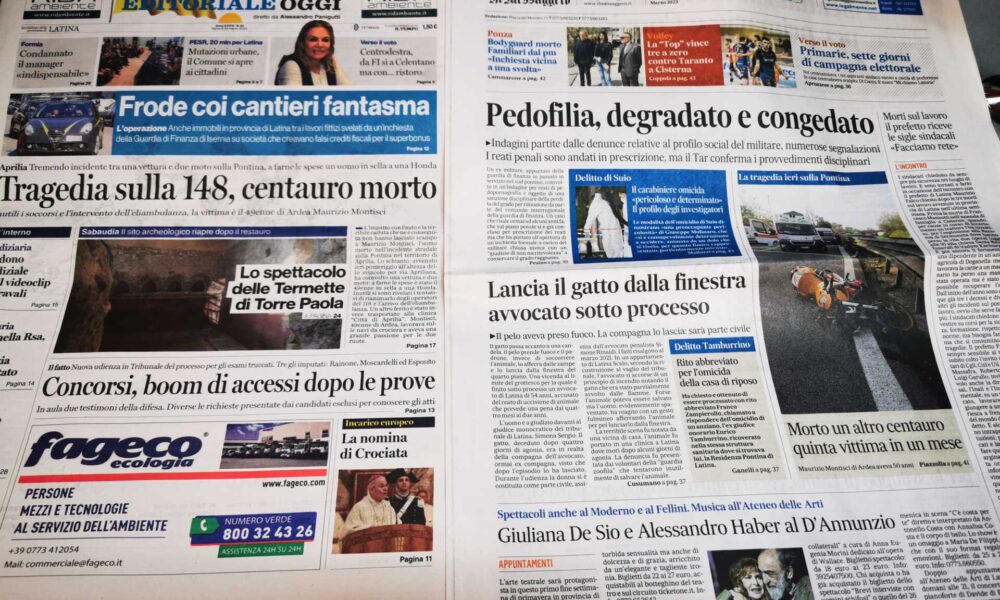 LATINA – Qui trovate Prima Pagina, ora solo in versione web, per dare uno sguardo ai titoli di Latina Editoriale Oggi e Il Messaggero Latina. ASCOLTA