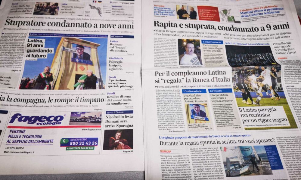 LATINA – Qui trovate Prima Pagina, ora solo in versione web, i pochi minuti i titoli di Latina Editoriale Oggi e del Messaggero Latina. ASCOLTA