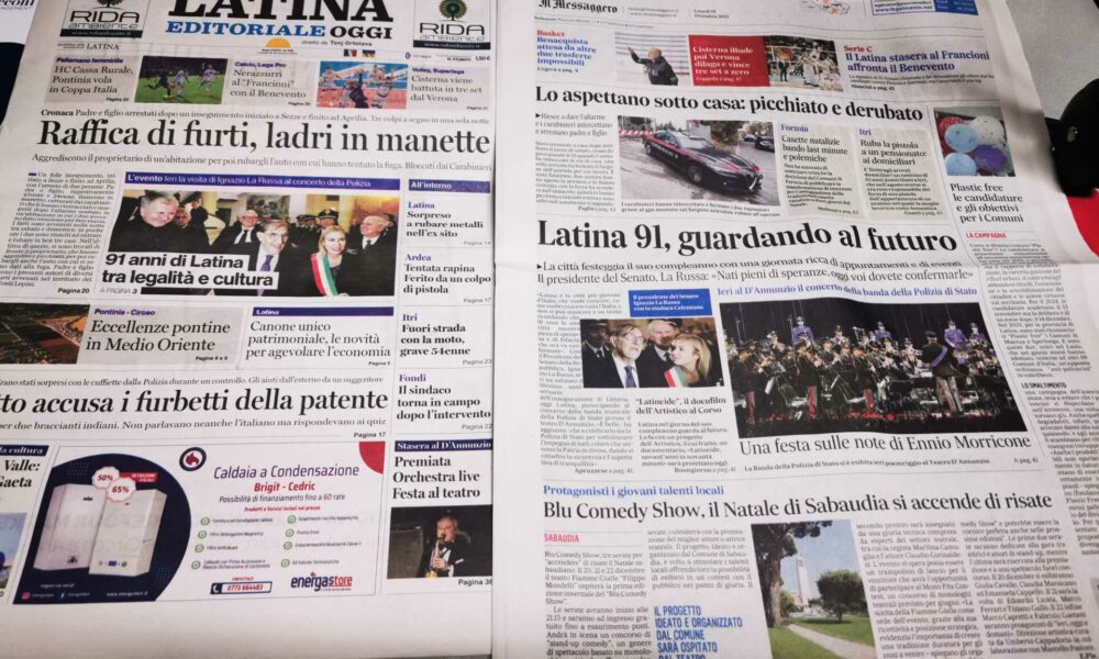 LATINA – Qui trovate Prima Pagina, ora solo in versione web, i pochi minuti i titoli di Latina Editoriale Oggi e del Messaggero Latina. ASCOLTA