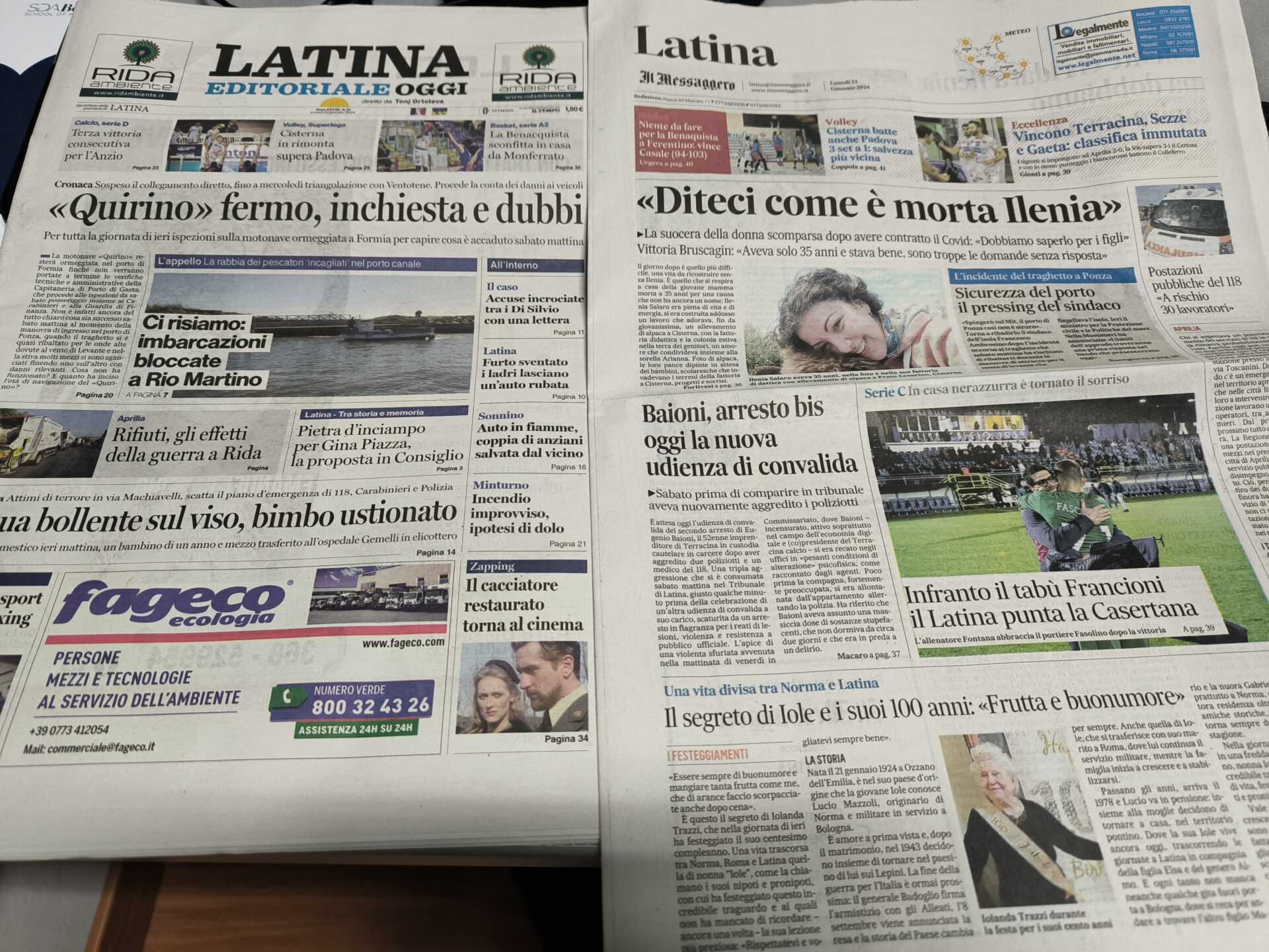 I quotidiani di Latina in un click – 22 gennaio 2023