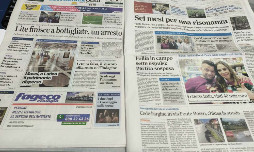 LATINA – Qui trovate Prima Pagina, ora solo in versione web, i pochi minuti i titoli di Latina Editoriale Oggi e del Messaggero Latina. ASCOLTA