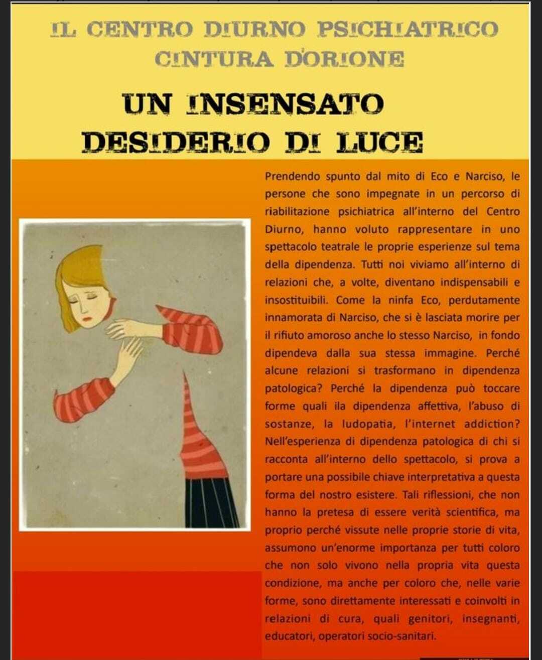 LATINA – Nell’ambito del Programma Eco-schools del Comune di Latina domani e dopodomani, alle ore 9, i pazienti del centro diurno psichiatrico della Asl di Aprilia “Cintura d’Orione”, impegnati in percorsi di riabilitazione psichiatrica, saliranno sul palco dell’istituto superiore Galilei per lo spettacolo “Questo insensato desiderio di luce” con il quale raccontano le proprie esperienze di vita.