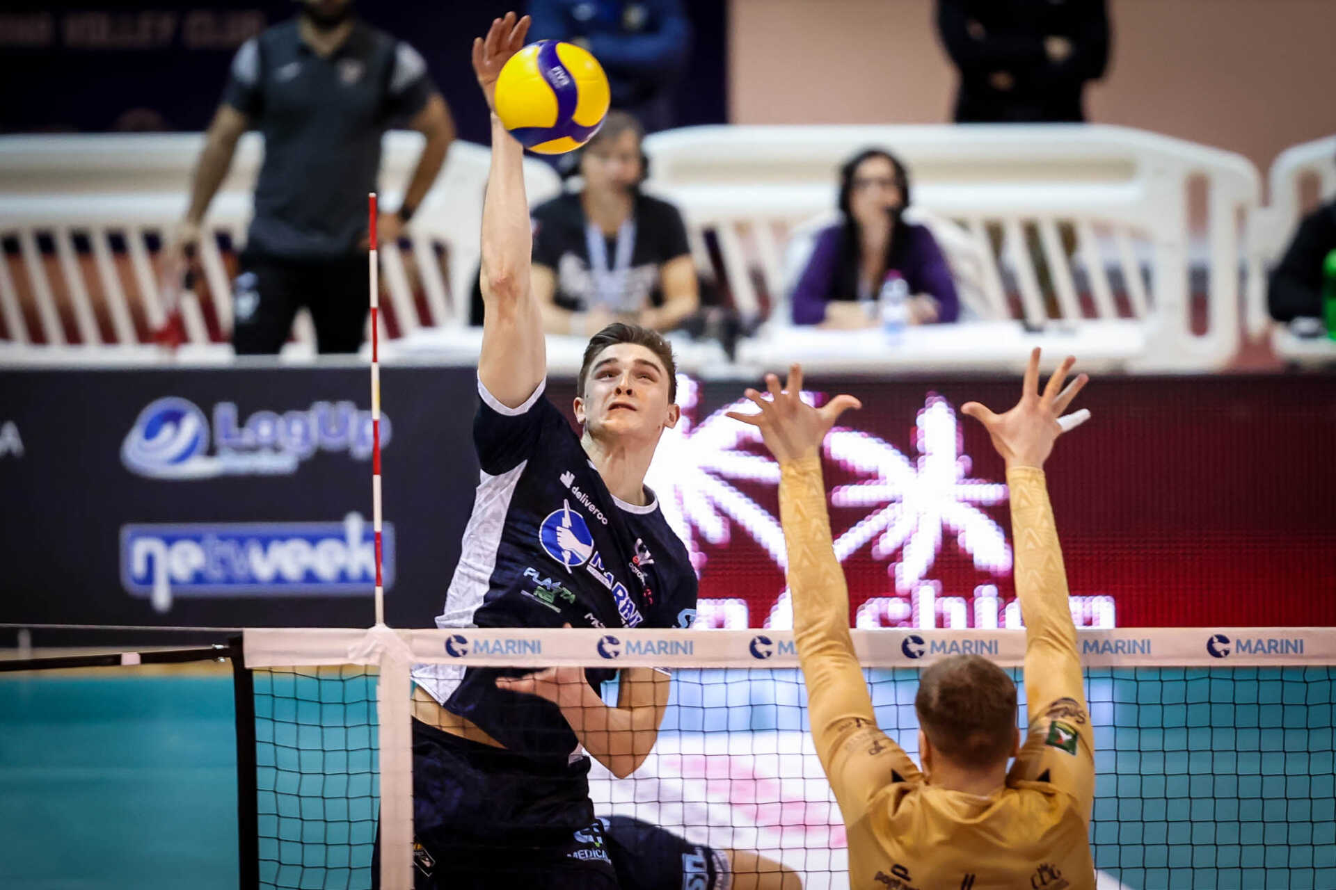 IL MATCH – Coach Guillermo Falasca schiera il Cisterna Volley con Michele Baranowicz in cabina di regia opposto a Theo Faure, laterali Pavle Peric e Jordi Ramon con Daniele Mazzone e Aleksandar Nedeljkovic centrali e Alessandro Piccinelli libero.