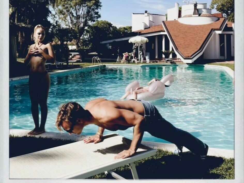Nei panni di Siffredi, un bellissimo Alessandro Borghi, che ieri ha pubblicato su Instagram la foto a bordo piscina scattatagli durante le riprese dalla direttrice della fotografia Daria D’Antonio, con il commento: “Con scarsissimi risultati, prima delle scene di nudo facevo sempre dei piegamenti”.