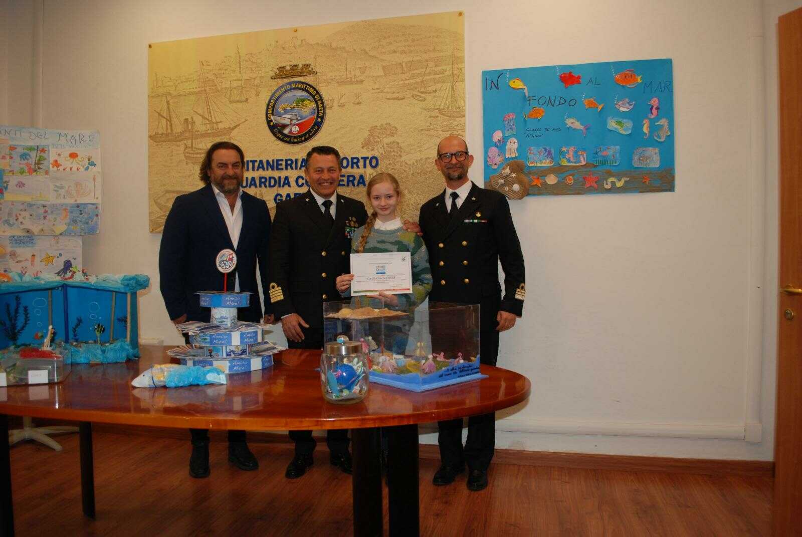 LA CITTADINANZA DEL MARE – A suggellare la settimana, alla presenza del Direttore Marittimo del Lazio, Capitano di Vascello Michele CASTALDO, presso la Capitaneria di porto di Gaeta si è tenuto un evento, nel corso del quale agli studenti partecipanti al concorso nazionale “La Cittadinanza del mare” sono stati conferiti gli attestati di partecipazione alle classi che, nelle scorse settimane, hanno aderito con progetti creativi di vario tipo, al concorso “La cittadinanza del Mare” indetto dal Ministero dell’istruzione e dalla Guardia Costiera al fine di promuovere la cultura marinara e sensibilizzare i giovani a diventare promotori della conservazione del mare e della sua cultura.