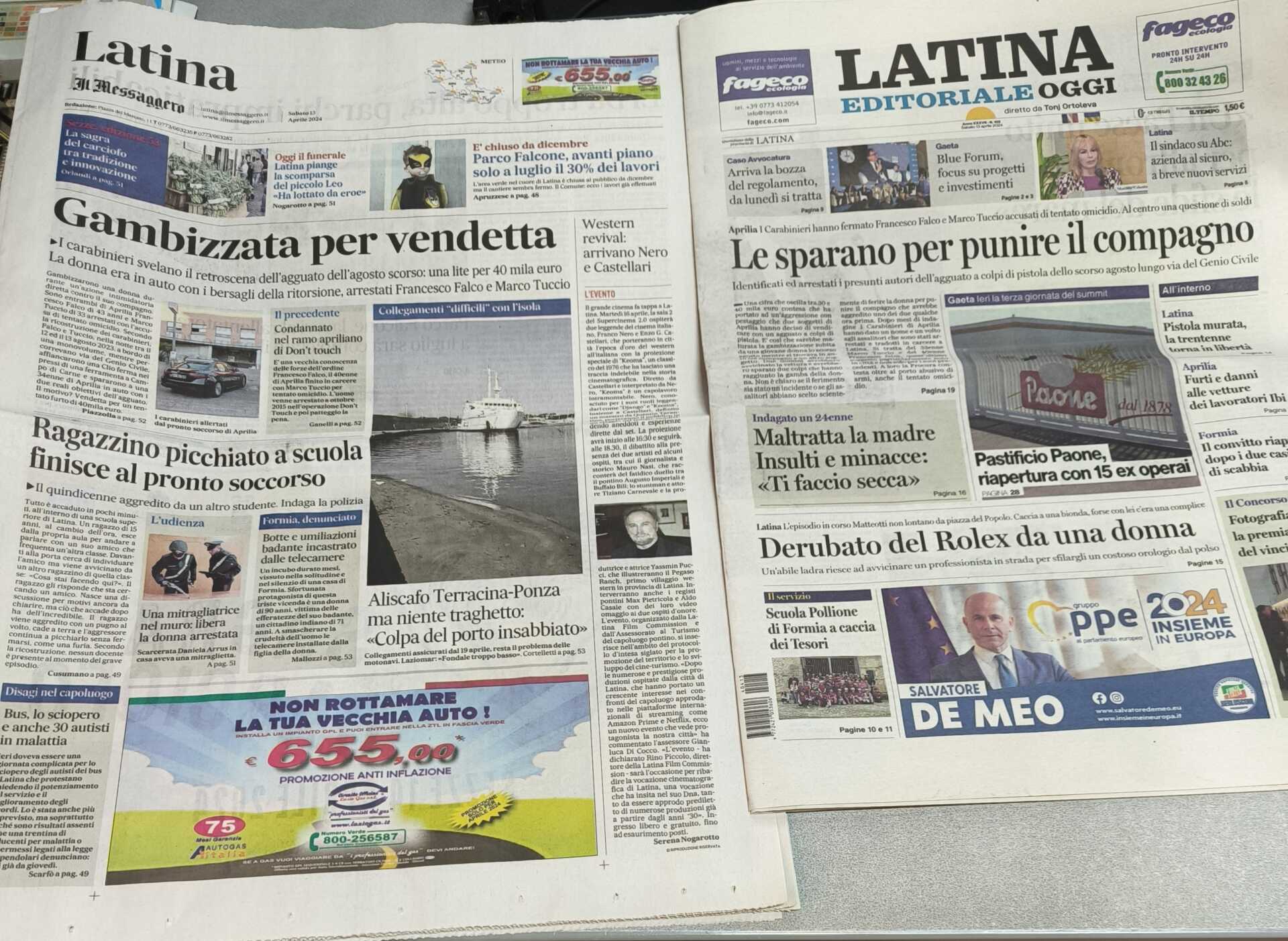 LATINA – Qui trovate Prima Pagina, in un file audio di pochi minuti, i titoli di Latina Editoriale Oggi e del Messaggero Latina