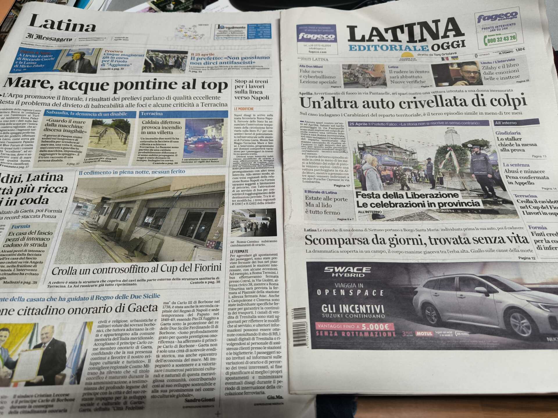 I quotidiani di Latina in un click – 26 aprile 2023