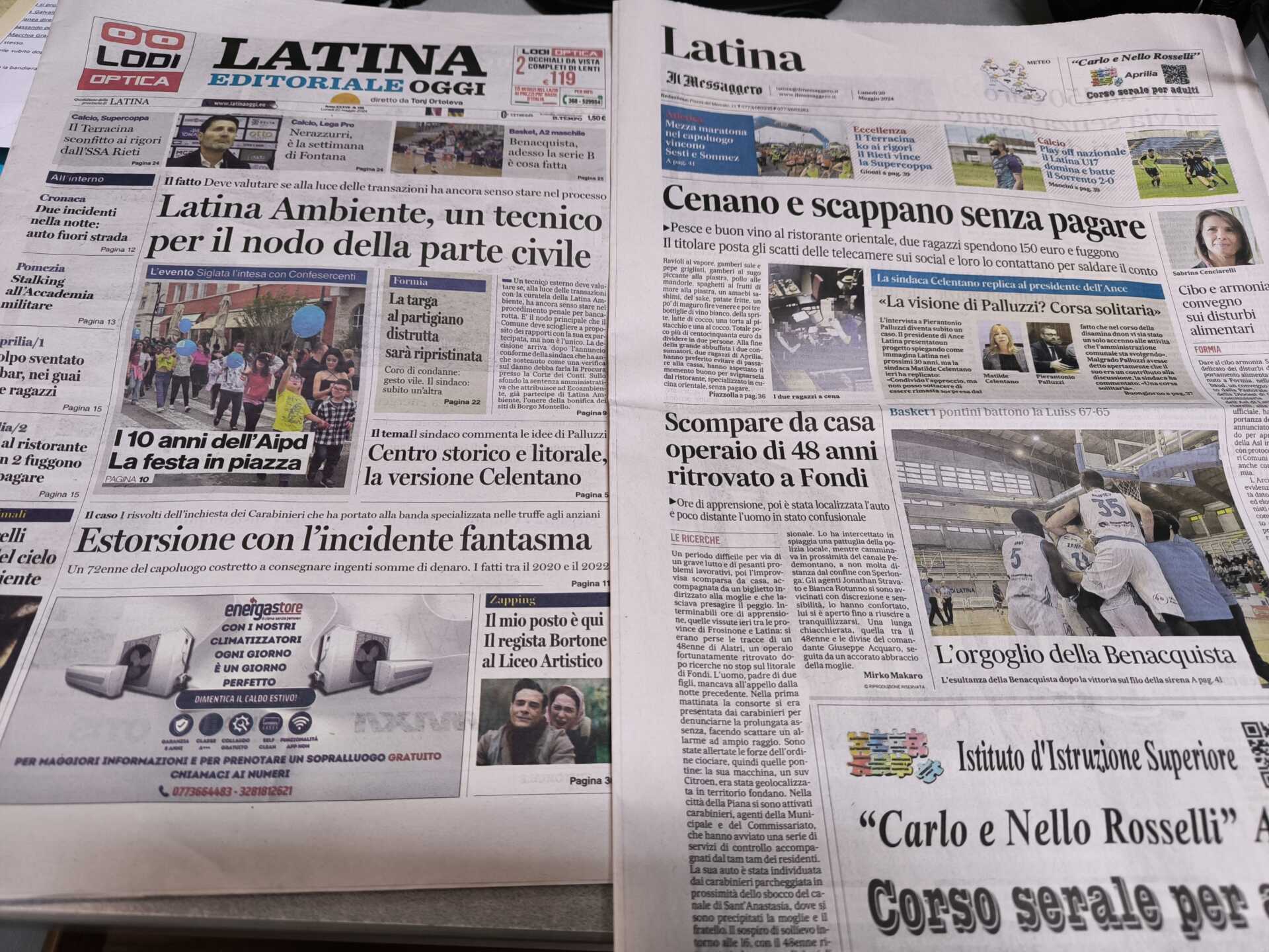 I quotidiani di Latina in un click – 20 maggio 2024